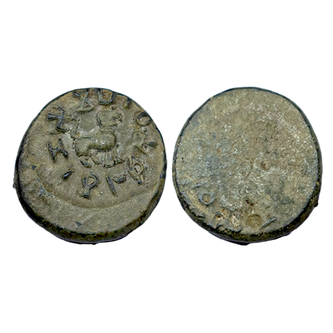 INDO-SCYTHIAN, Vonones with Spalahores Silver tetradrachm, 9.50Grms, Obverse King mounted on horse right, holding spear, Greek legend around: BAΣIΛEωΣ BAΣIΛEΩN MEΓAΛOY / ONΩNOY, Reverse: Zeus standing facing, holding sceptre and thunderbolt, monogram at right, Kharoshthi legend around: maharajabhrata dhramikasa / spalahorasa, Extremely Rare.