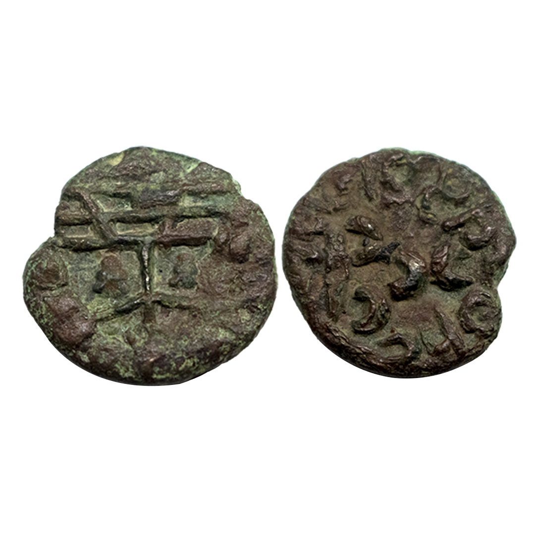 Indo-Scythians, Maues, (c. 90-60 BC), Copper Drachm, 7.92Grms, OBV: Head of Elephant to right, with bell around the neck and trunk raised, REV: Caduceus in centre, Greek legend BASILEOS MAUOU on either side, monogram in the left field. (Mitch ACW # 1638). Fine.