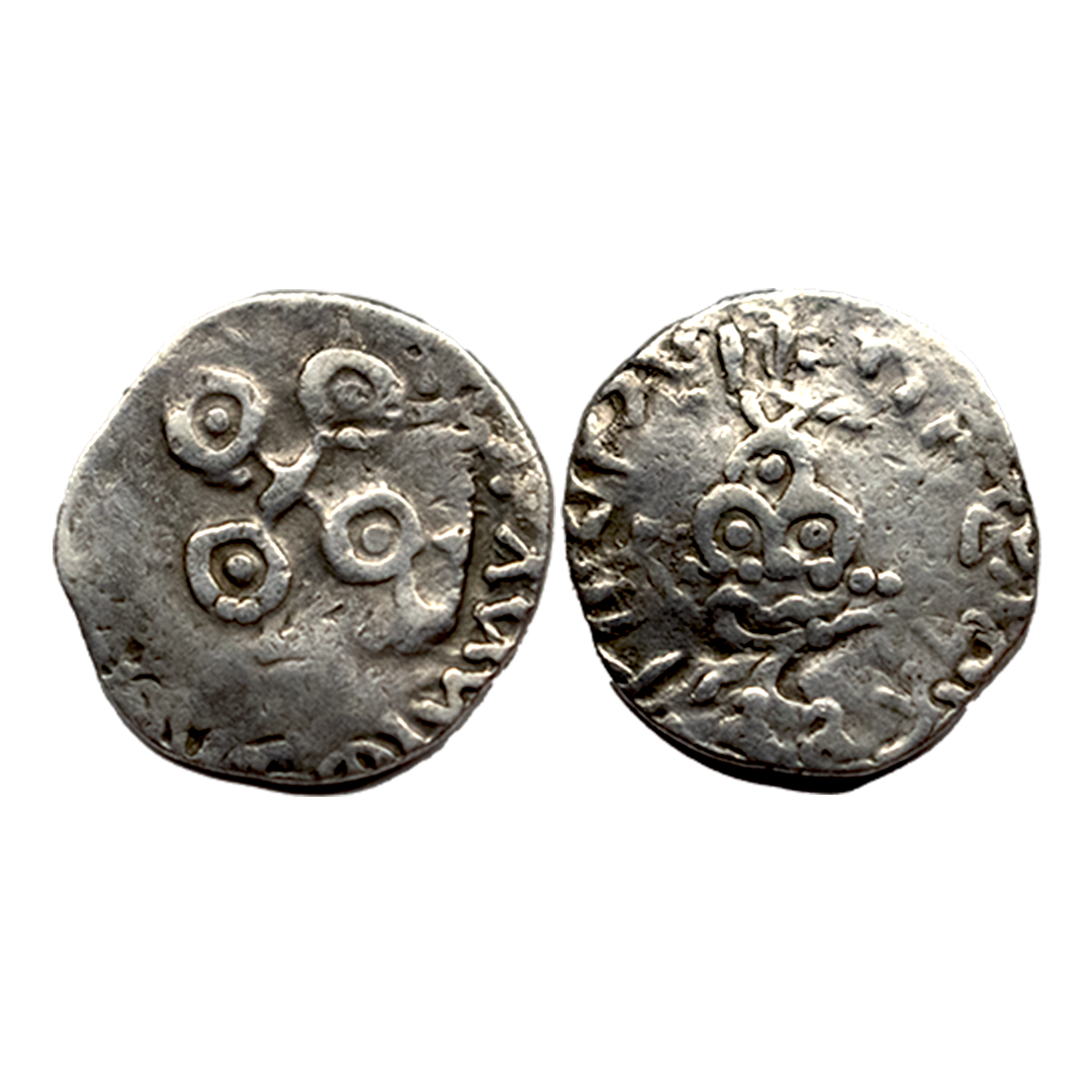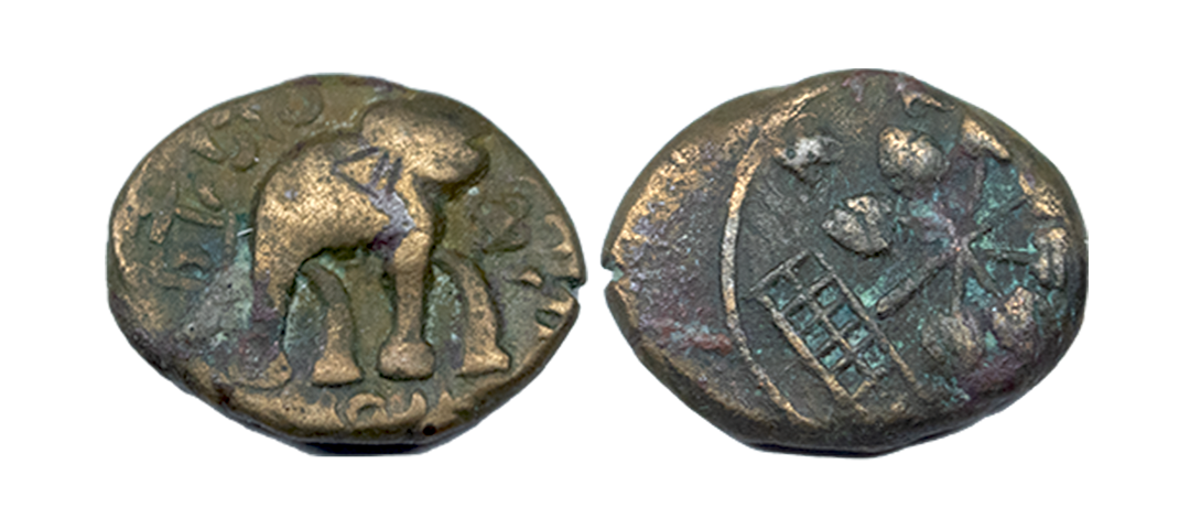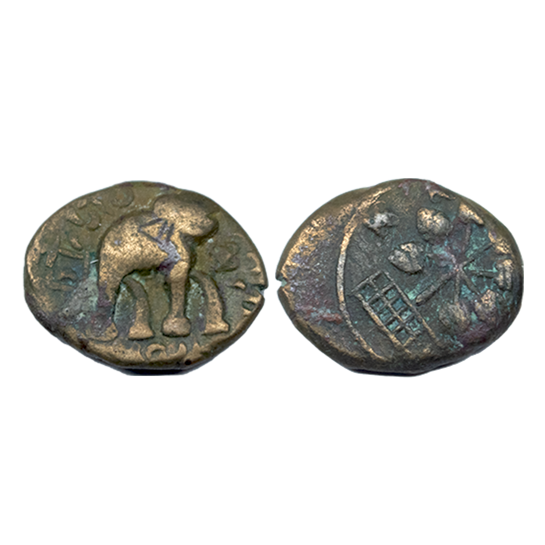 Satavahanas, Kochhiputra Siri Satakarni (c. 60-40 BC), Newase-Paithan Region, Copper Unit, 2.88Grms, OBV: Humped bull standing facing to right side with Brahmi legend ‘…putasa..takani..’, REV: Tree-i-railing with broad leaves. (Pieper # 2628). Fine+.