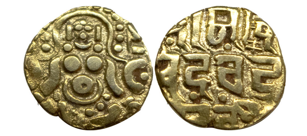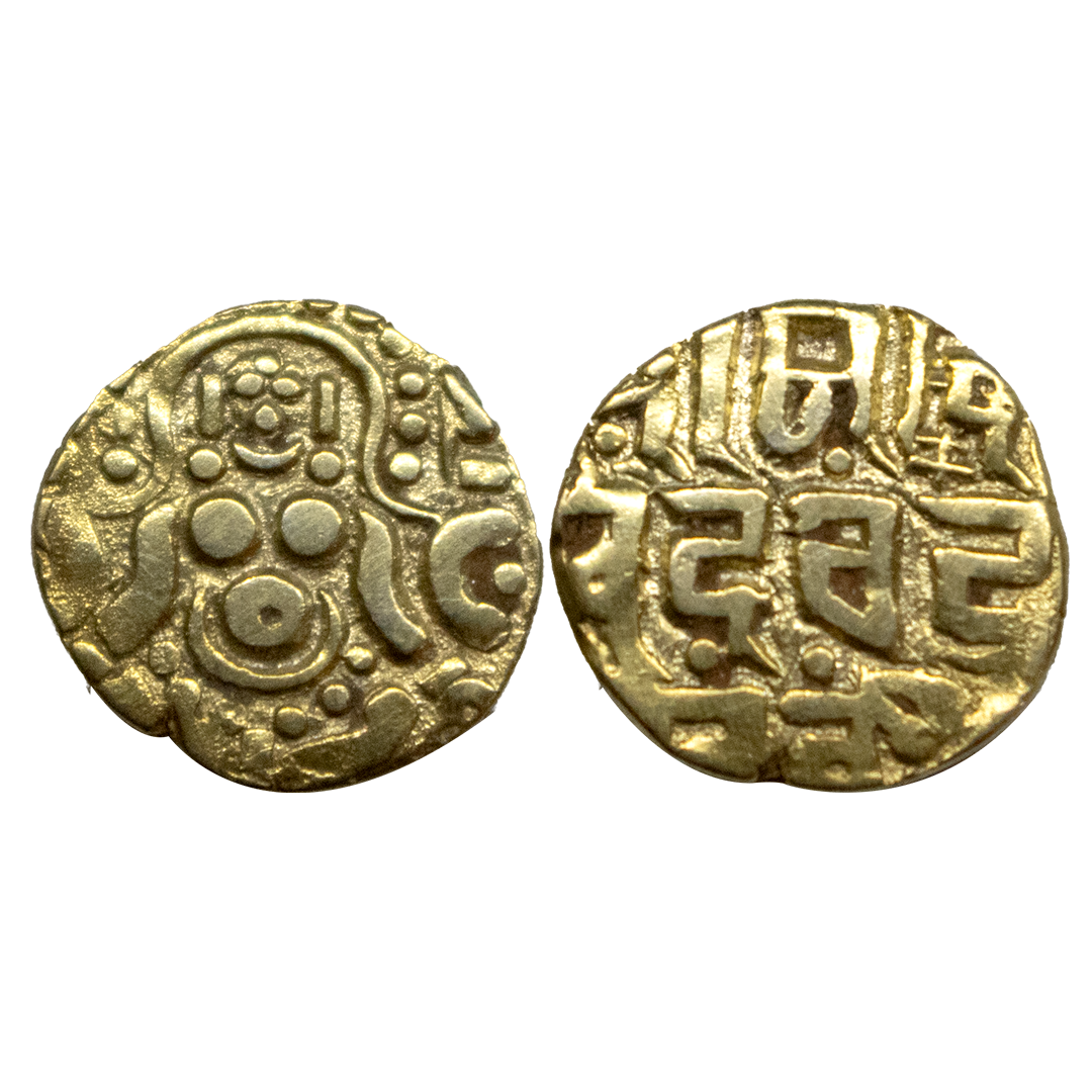 Hindu rulers of Kashmir, Utpala dynasty, Didda Rani, (980-1003 AD), Copper Dinara, 5.79Grms, OBV: Seated deity Lakshmi, Sharada letters ‘Shri’ at left, ‘Di(dda)’ at right, REV: Crude standing king offering to fire altar at left. Fine+.