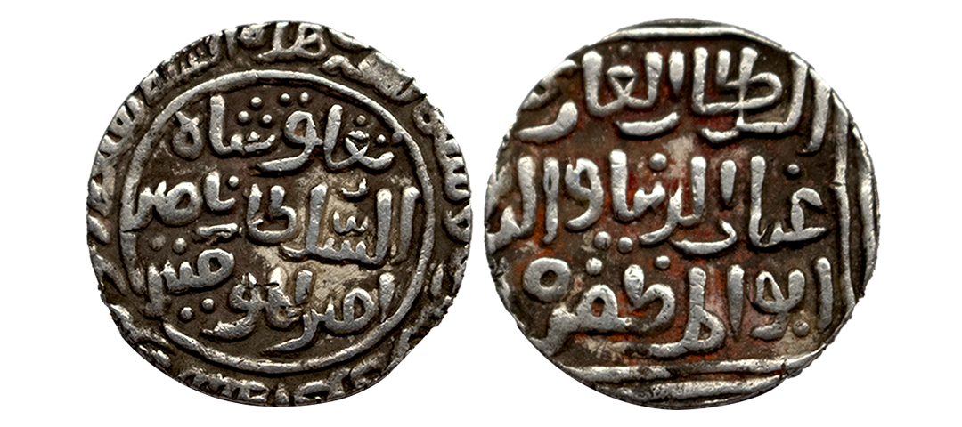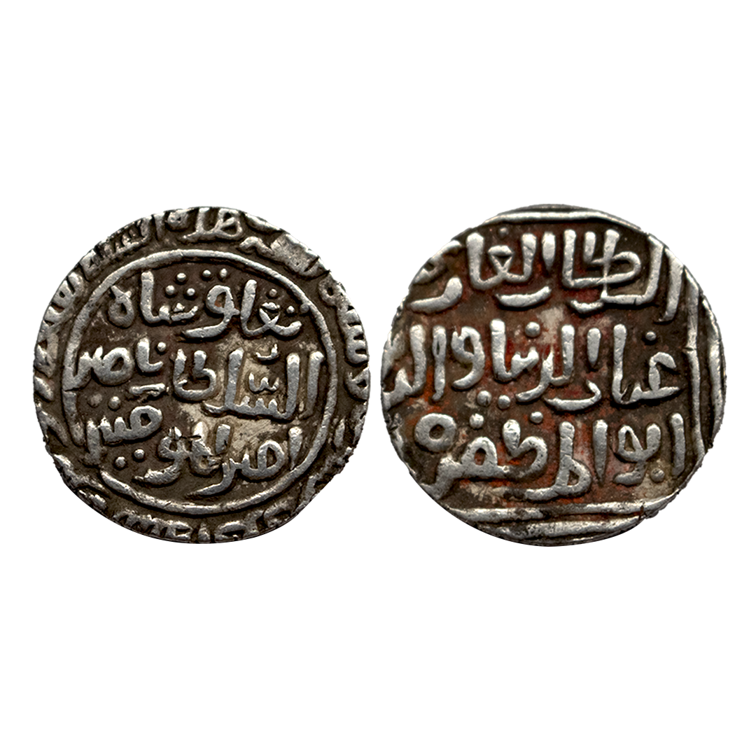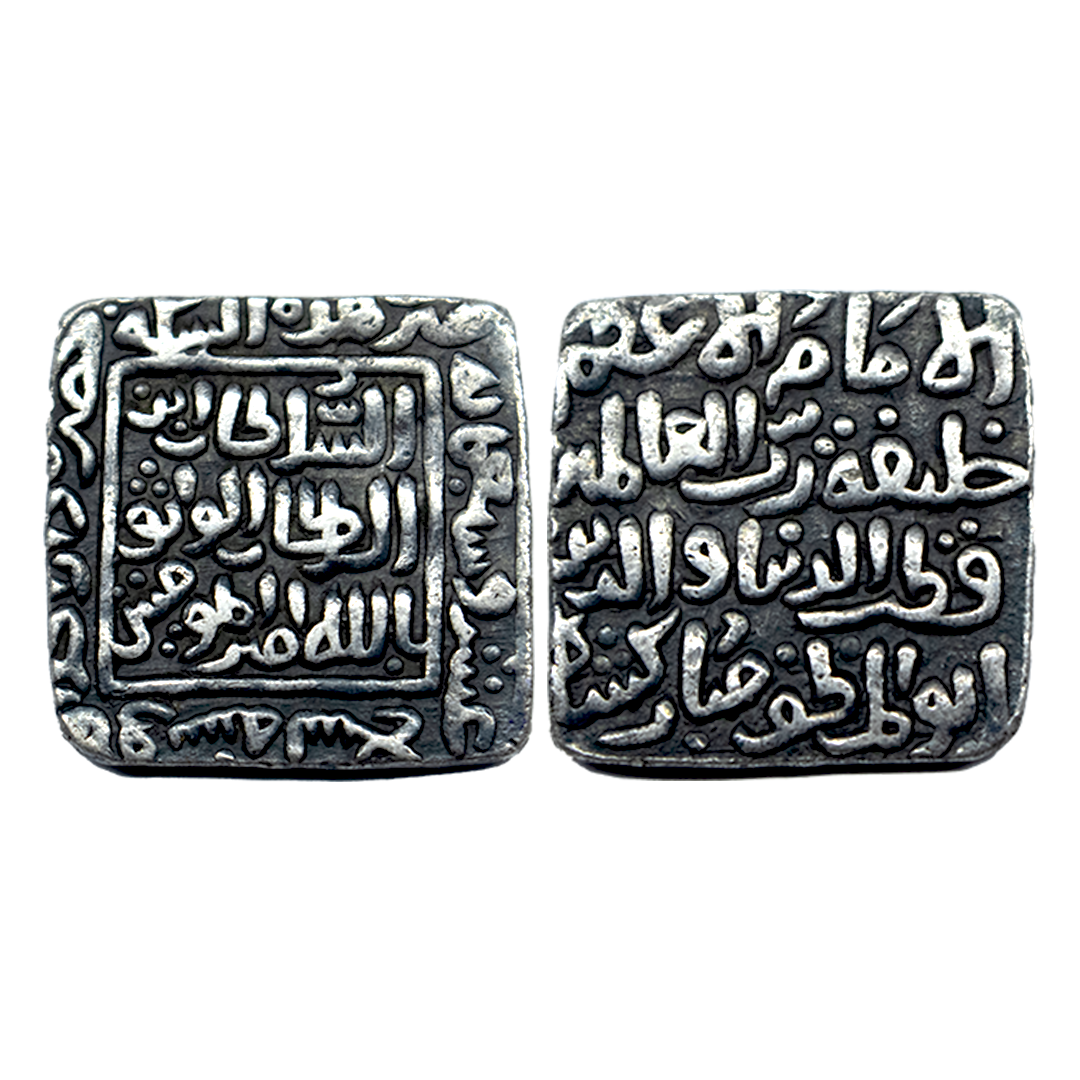 Nizam Shahs of Ahmadnagar, silver abbasi of Burhan Nizam Shah II (1591-1595 AD), Burhanabad mint, unlisted in G&G, 7.26g. Obv: In a Mihrab shaped cartouche, the shi'l version of the sahada in corporating Ali wali allah. Rev: Arabic legend Zarb Burhanabad in circle, Arabic inscription Khadim Ahl-i Bait-i Rasool Allah Abu al-Ghazi Burhan Nizam Shah seen in margin. Extremely fine, Very rare.
