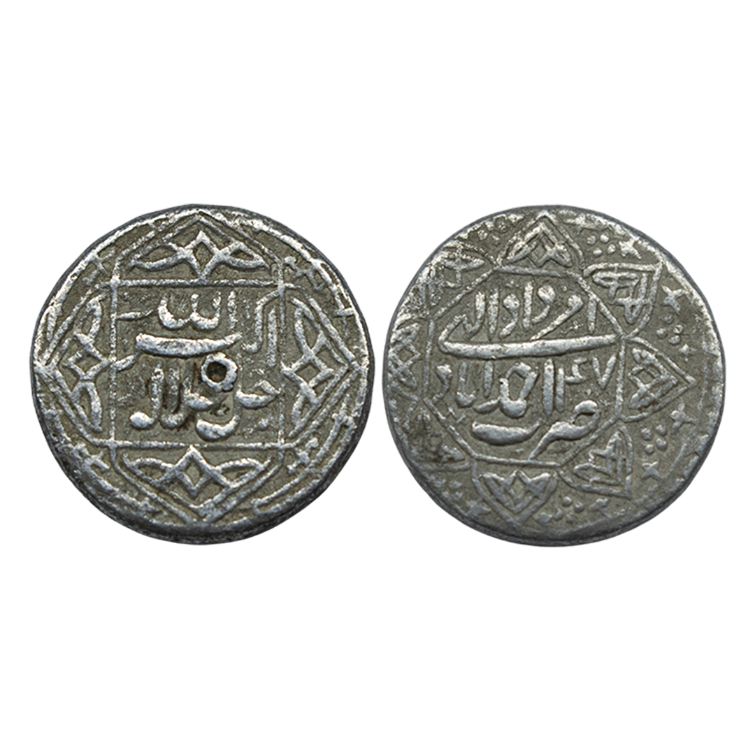 Akbar (AH 963-1014 / 1556-1605 AD), Silver Square Rupee, 11.32Grms, Ahmadabad Mint, Ilahi type, Month Tir, Year 39. (KM # 88.1). Fine.