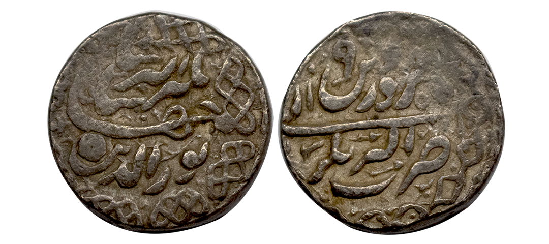 Jahangir (AH 1014-1037 / 1605-1627 AD), Silver Rupee, 11.43Grms, Ahmadabad Mint, AH 1029, RY 15, poetic couplet on rev. read as Az enayate elah. (KM # 149.4). Very Fine.