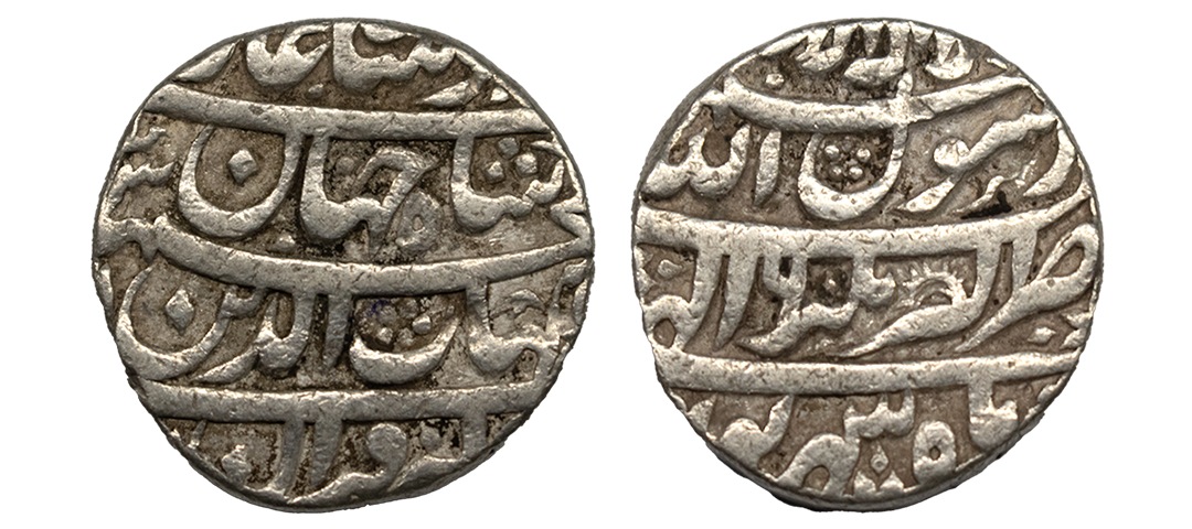 Shah Jahan (AH 1037-1068 / 1628-1658 AD), Silver Rupee, 11.38Grms, Akbarnagar Mint, AH 1044, RY 7, mint name on rev left margin with complete mint name, both sides central inscription within square area knots on each corner. (KM # 235.4). Very Fine.