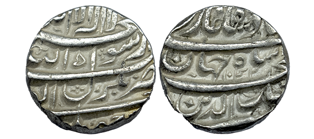Shah Jahan (AH 1037-1068 / 1628-1658 AD), Silver Rupee, 11.38Grms, Akbarnagar Mint, AH 1044, RY 7, mint name on rev left margin with complete mint name, both sides central inscription within square area knots on each corner. (KM # 235.4). Very Fine.