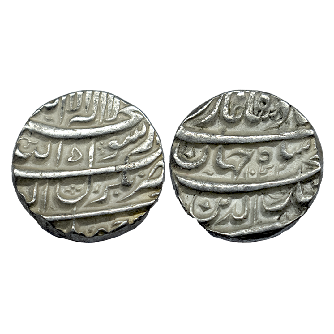 Shah Jahan (AH 1037-1068 / 1628-1658 AD), Silver Rupee, 11.38Grms, Akbarnagar Mint, AH 1044, RY 7, mint name on rev left margin with complete mint name, both sides central inscription within square area knots on each corner. (KM # 235.4). Very Fine.