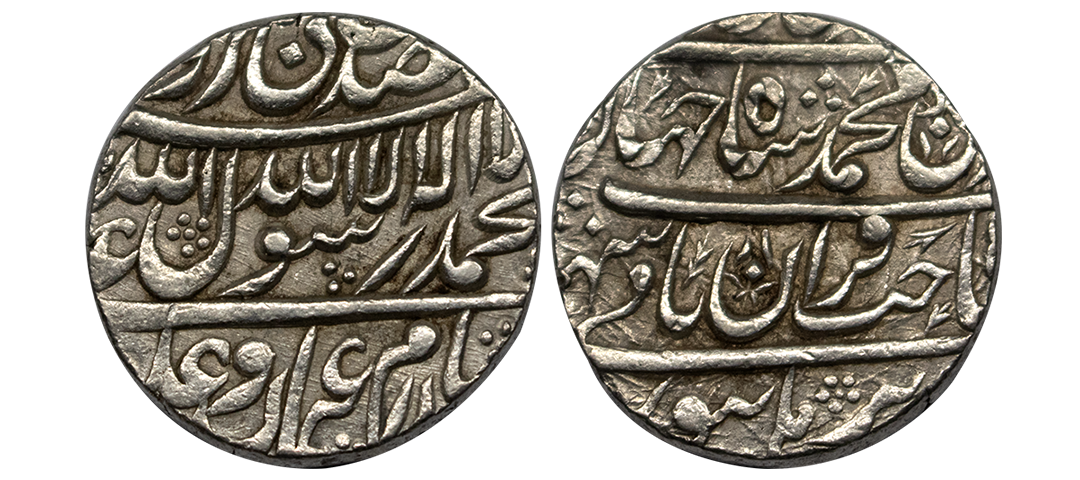 Shah Jahan, Silver Rupee, 11.40g, Nagar (Bhakkar) Mint, AH 1042, legend in four lines (KM 224.7). Very Fine+, Extremely rare.