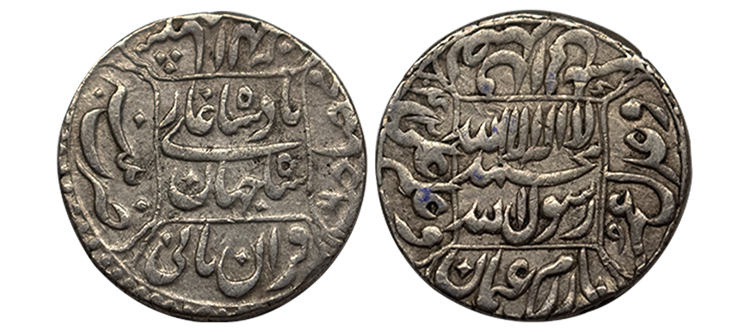 Shah Jahan (AH 1037-1068 / 1628-1658 AD), Silver Rupee, 11.41Grms, Multan Mint, AH 1067, RY 31, both sides central inscription within square area knots on each corner. (KM # 235.19). Fine+.