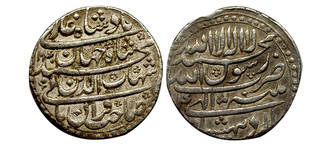 Shah Jahan (AH 1037-1068 / 1628-1658 AD), Silver Rupee, 11.41Grms, Multan Mint, AH 1067, RY 31, both sides central inscription within square area knots on each corner. (KM # 235.19). Fine+.