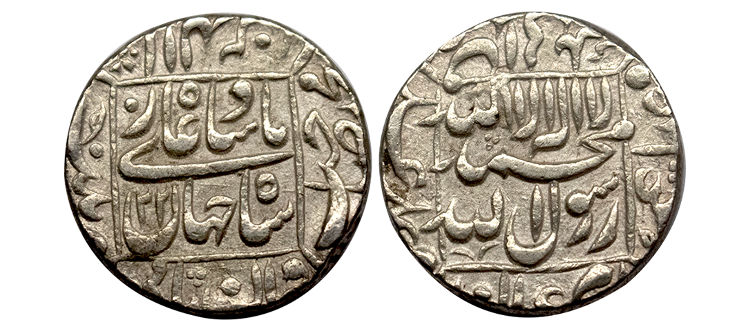 Shah Jahan (AH 1037-1068 / 1628-1658 AD), Silver Rupee, 11.41Grms, Multan Mint, AH 1067, RY 31, both sides central inscription within square area knots on each corner. (KM # 235.19). Fine+.