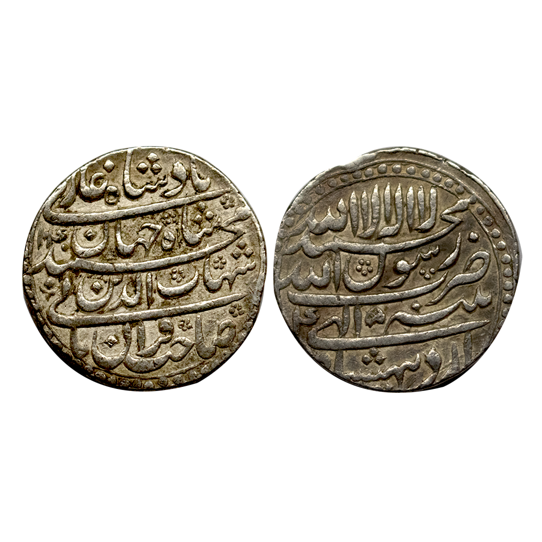 Shah Jahan (AH 1037-1068 / 1628-1658 AD), Silver Rupee, 11.41Grms, Multan Mint, AH 1067, RY 31, both sides central inscription within square area knots on each corner. (KM # 235.19). Fine+.
