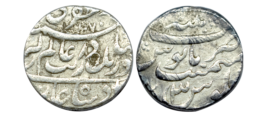 Aurangzeb (AH 1068-1118 / 1658-1707 AD), Silver Rupee, 11.52Grms, Makhsusabad Mint, AH 1106, RY 48, Badr-e-munir type. (KM # 300.58). Fine+.