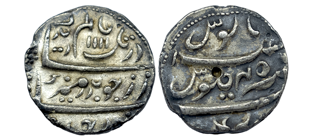 Aurangzeb (AH 1068-1118 / 1658-1707 AD), Silver Rupee, 11.52Grms, Makhsusabad Mint, AH 1106, RY 48, Badr-e-munir type. (KM # 300.58). Fine+.