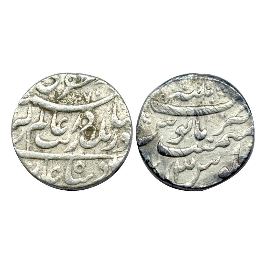 Aurangzeb (AH 1068-1118 / 1658-1707 AD), Silver Rupee, 11.52Grms, Makhsusabad Mint, AH 1106, RY 48, Badr-e-munir type. (KM # 300.58). Fine+.