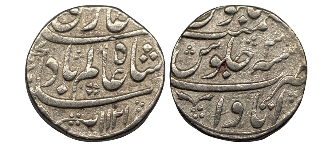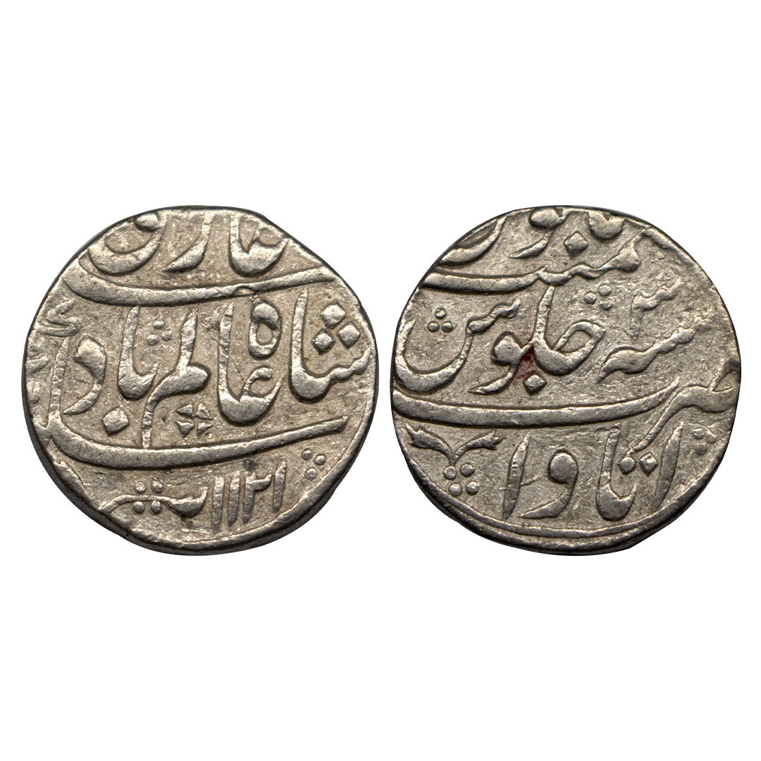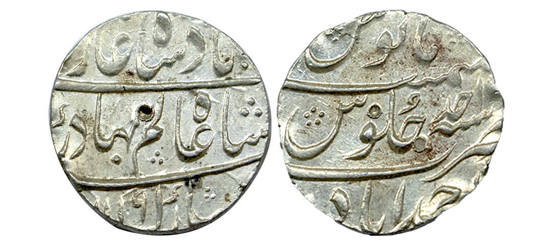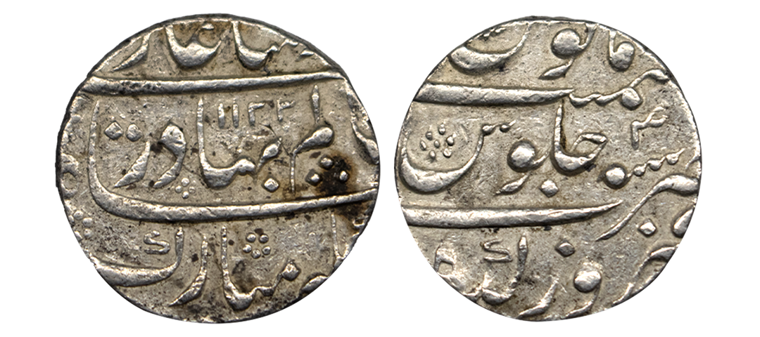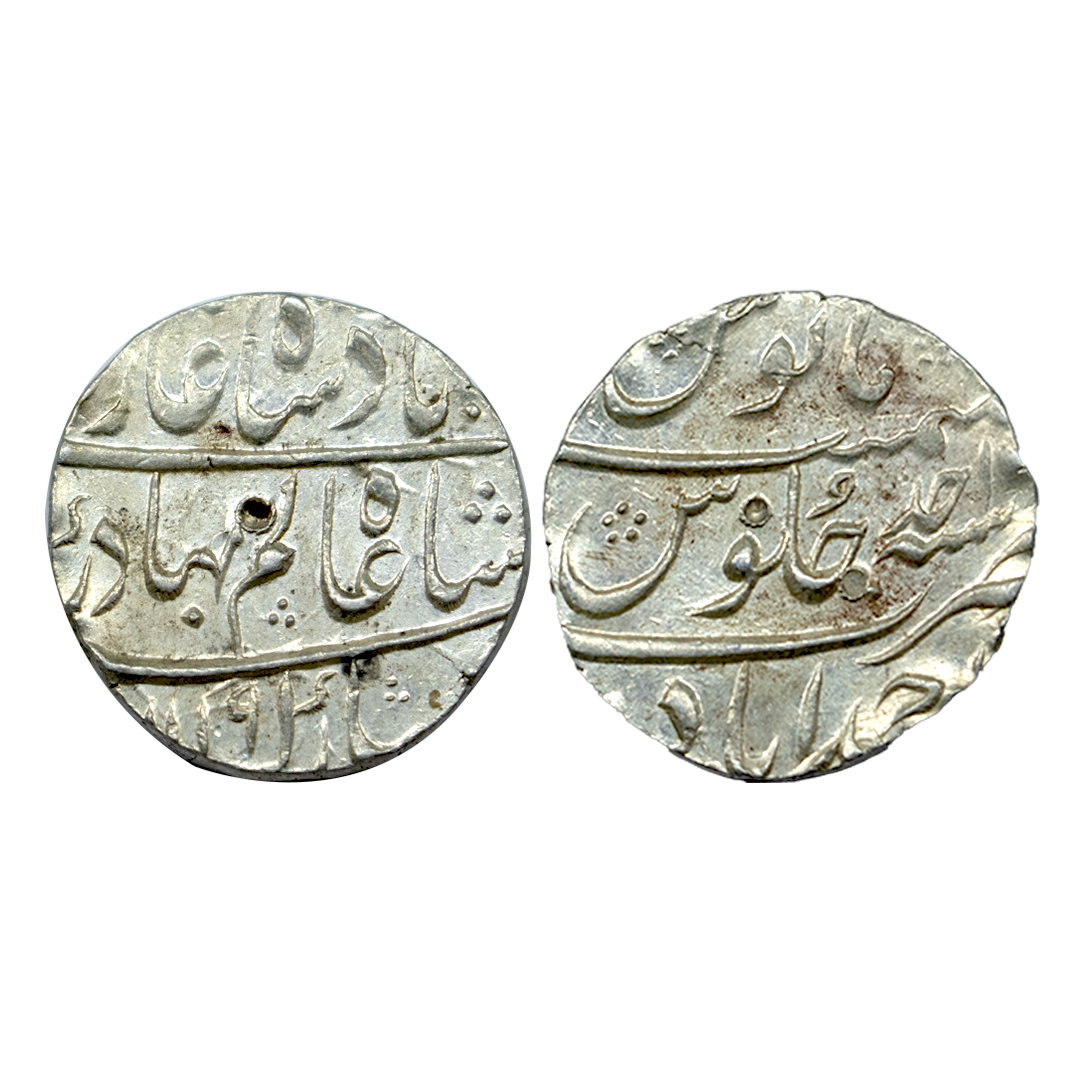 Kam Bakhsh (1707-1708 AD), silver rupee, Gokak mint, RY 41 (error date), KM 336.4. Obv: Legend khursheed-o-mah, badshahe kam bakhsh, din panah. Rev: Mint-name, Jalus Maimanat Manus and RY. About Uncirculated, Shroff Mark Edge, Graded by PCGS, Excedingly rare.