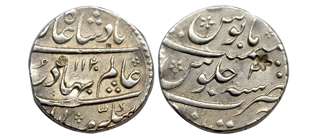 Shah Alam Bahadur (AH 1119-1124 / 1707-1712 AD), Silver Rupee, 11.33Grms, Itawa Mint, AH 1121, RY 3, complete mint name on rev bottom area. (KM # 347.8). Very Fine+.