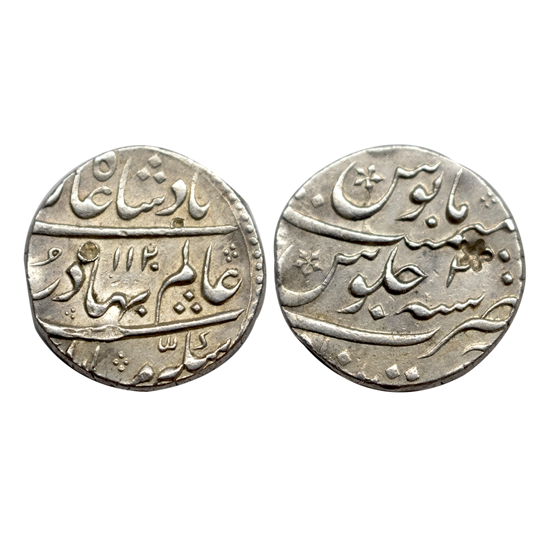 Shah Alam Bahadur (AH 1119-1124 / 1707-1712 AD), Silver Rupee, 11.33Grms, Itawa Mint, AH 1121, RY 3, complete mint name on rev bottom area. (KM # 347.8). Very Fine+.