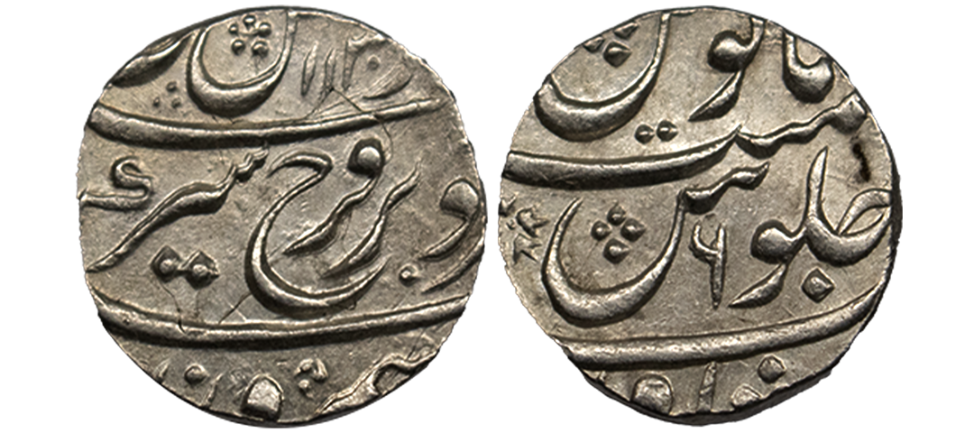 " /> 1124-1131 / 1713-1719 AD), Gold Mohur, 10.94Grms, Khujista Bunyad (Aurangabad) Mint, RY 7, Baher-o-bar type, complete mint name on rev bottom area. (KM # 408.4). " />Lot No: 356