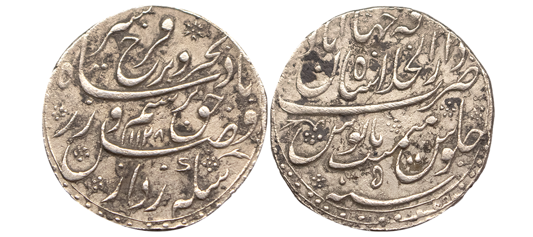 " /> 1124-1131 / 1713-1719 AD), Gold Mohur, 10.94Grms, Khujista Bunyad (Aurangabad) Mint, RY 7, Baher-o-bar type, complete mint name on rev bottom area. (KM # 408.4). " />Lot No: 356