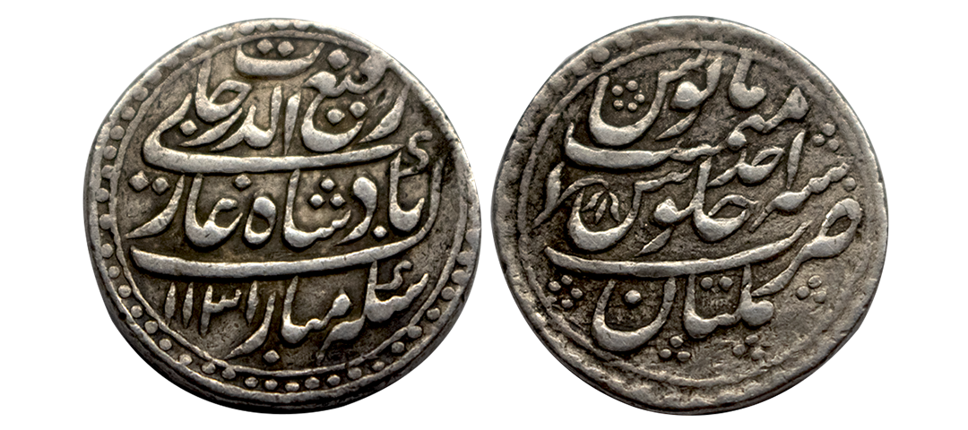 Rafi-ud-Darjat (AH 1131 / 1719 AD), Silver Rupee, 11.42Grms, Big Flan, Multan Mint, AH 1131, RY Ahd, complete both sides legend with dotted circle. (KM # 405.15). Very Fine+.