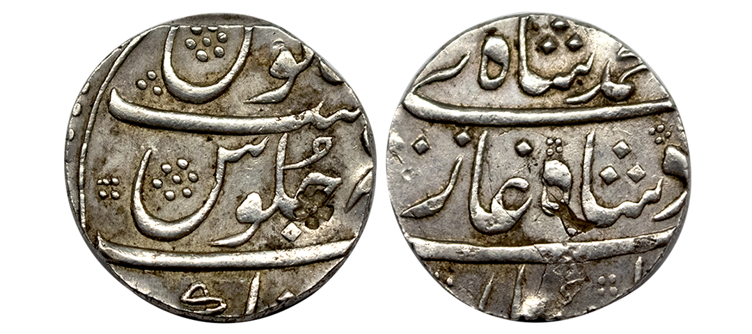 Muhammad Shah (AH 1131-1161 / 1719-1748 AD), Silver Rupee, 11.38Grms, Islamabad Mint, AH 1151, RY 21, complete mint name with epithet on rev top area, both side complete die impression. (KM 436.28). Very Fine+.