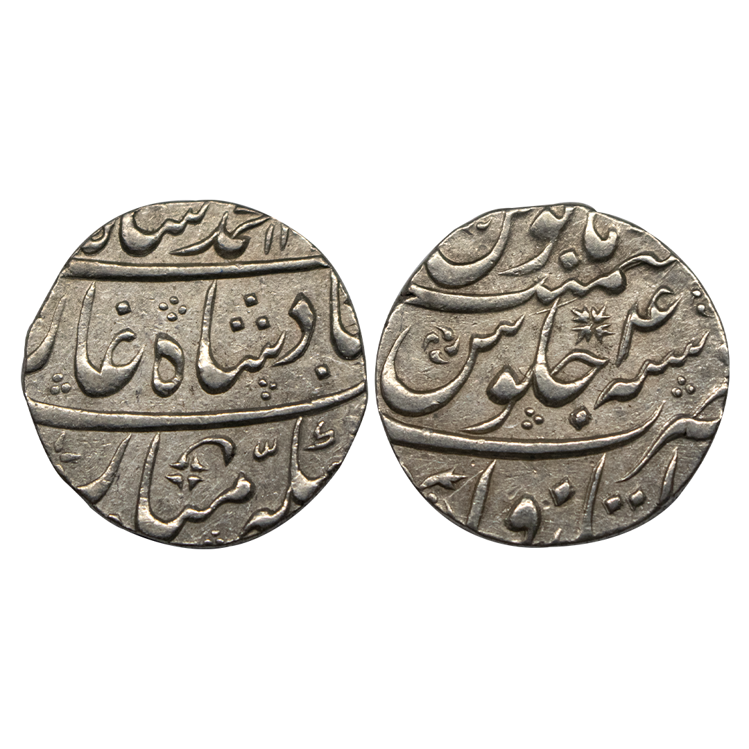 Muhammad Shah (AH 1131-1161 / 1719-1748 AD), Silver Rupee, 11.38Grms, Islamabad Mint, AH 1151, RY 21, complete mint name with epithet on rev top area, both side complete die impression. (KM 436.28). Very Fine+.