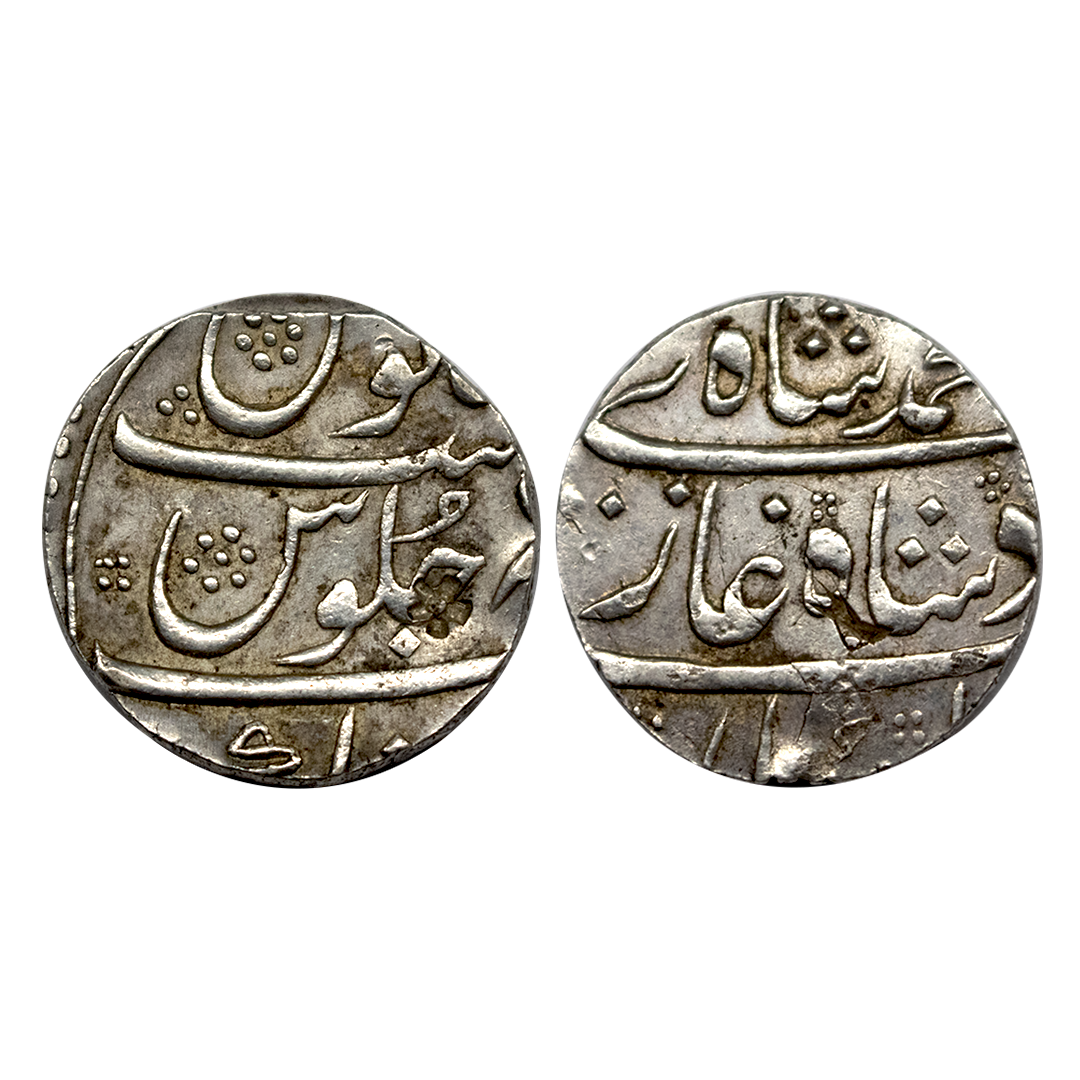 Muhammad Shah (AH 1131-1161 / 1719-1748 AD), Silver Rupee, 11.38Grms, Islamabad Mint, AH 1151, RY 21, complete mint name with epithet on rev top area, both side complete die impression. (KM 436.28). Very Fine+.