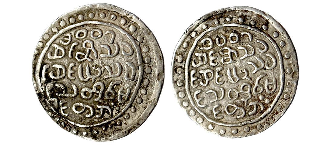 Arakan, Thado (BE 1007-1014 / 1645-1652 AD), Silver Rupee, 10.24Grms, BE 1007, both sides Arkanese and same legend read as 1007 Hsin ni thakhin hsin byu thakhin Thado min taya. (G&G # RA11). Very Fine+.