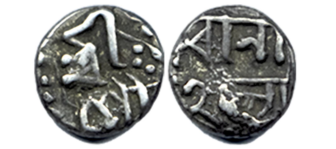 Assam, Gaurinatha Simha (SE 1702-1718 / 1780-1796 AD), Silver 1/16 Rupee, 0.70Grms, OBV: Sri Sri Gau/rinatha, REV: Simha/ Nrpasya. (A.Mitra # 432 types). Fine+.