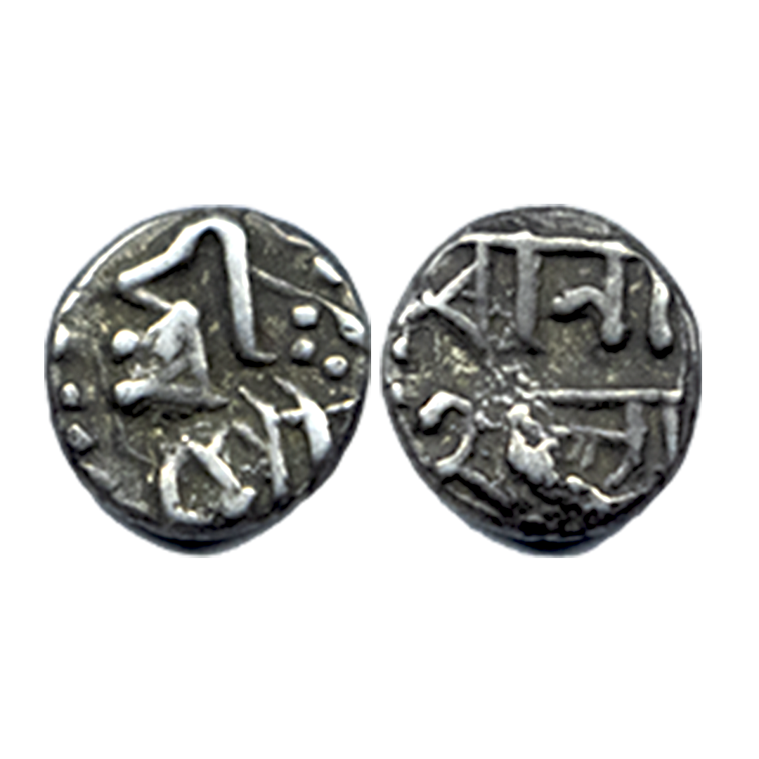 Assam, Gaurinatha Simha (SE 1702-1718 / 1780-1796 AD), Silver 1/16 Rupee, 0.70Grms, OBV: Sri Sri Gau/rinatha, REV: Simha/ Nrpasya. (A.Mitra # 432 types). Fine+.