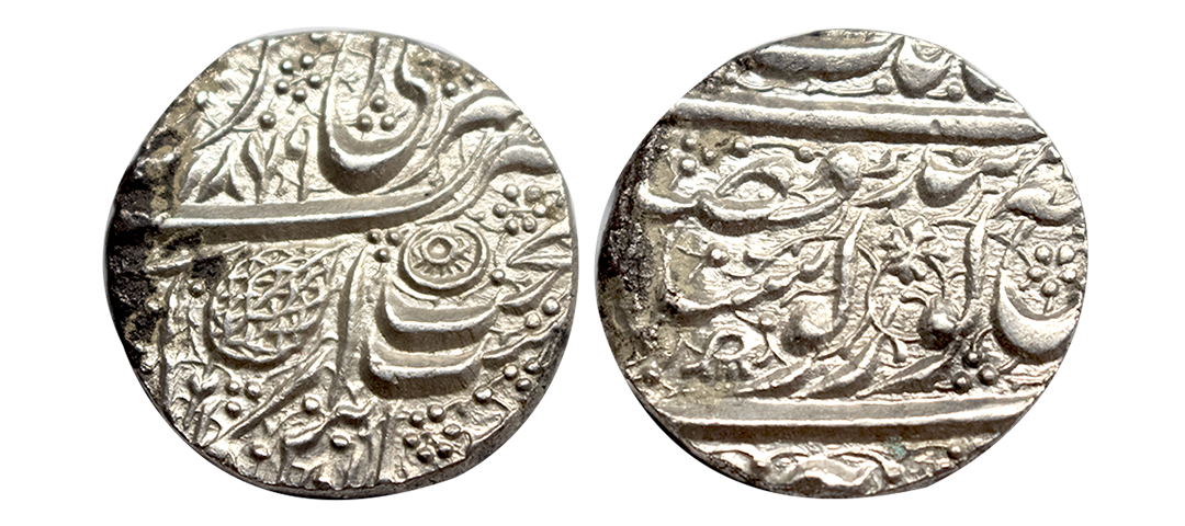Mysore, Haider Ali (AH 1174-1197 / 1761-1782 AD), Gold Pagoda, 3.44Grms, OBV: Shiva and Parvati seated on throne, Shiva holding objects, REV: Persian letter ‘He’ for Haidar Ali. (KM # 15). Very Fine+.