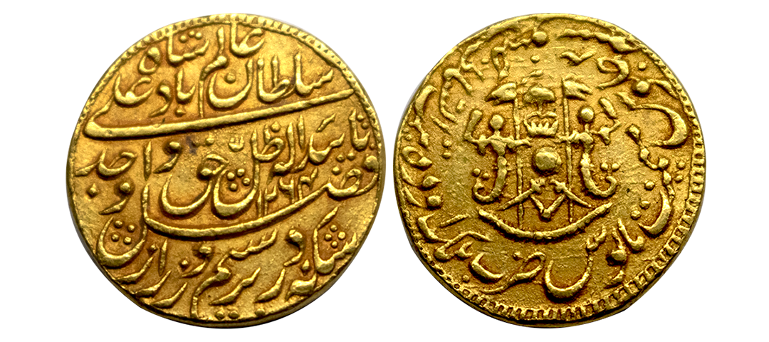 Awadh, Wajid Ali Shah (AH 1263-1272 / 1847-1856 AD), Gold Ashrafi, 10.71Grms, Mulk Awadh Bait-us-Sultanate Lukhnau Mint, AH 1264, RY 2, Complete Centre strike, mint variety V type. (KM # 378.1). Extremely Fine+.