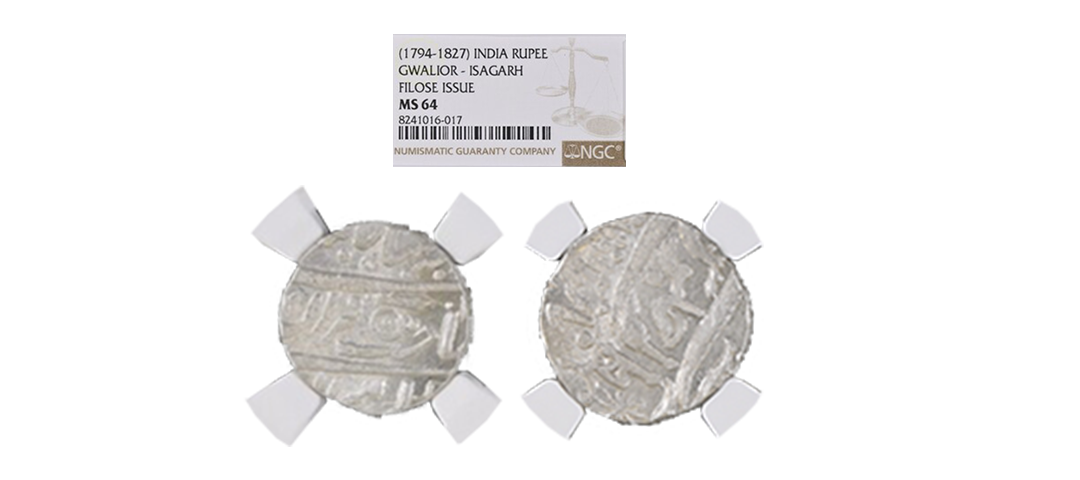 Bikanir, Sardar Singh (AH 1268-1289 / 1851-1872 AD), Silver Rupee, 11.34Grms, in the name of Alamgir II, AH 1229, various symbol on rev. (KM # 37). Fine.