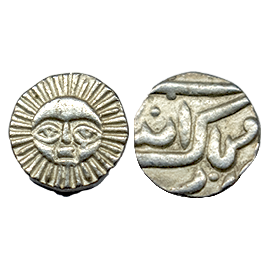Indore, Shivaji Rao Holkar (VS 1943-1960 / 1886-1903 AD), Silver 1/8 Rupee, 1.40Grms, Indore Mint, in the name of Shah Alam II, full sunface on obv. (KM # 41). Extremely Fine.