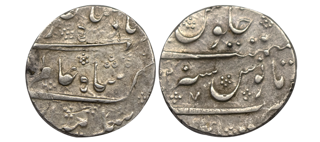 Narayanpett, Hyderabad Feudatory, Silver Rupee, 11.46Grms, Dilshadabad Mint, in the name of Alamgir II, ruler’s couplet on obv. Unlisted in KM. Fine+.