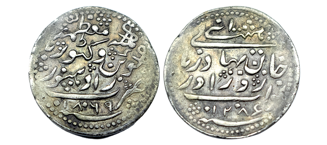 Patiala, Karma Singh (AH 1229-1261 / 1813-1845 AD), Silver Rupee, 10.96Grms, Sahrind Mint, in the name of Ahmad Shah Durrani, Persian letter Suwad on both sides. (KM # C30.3). Very Fine+.