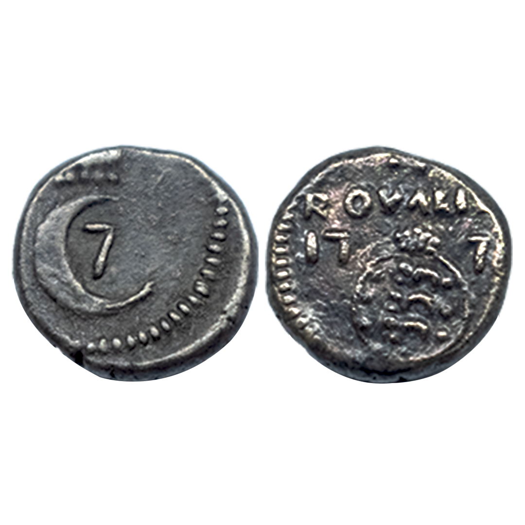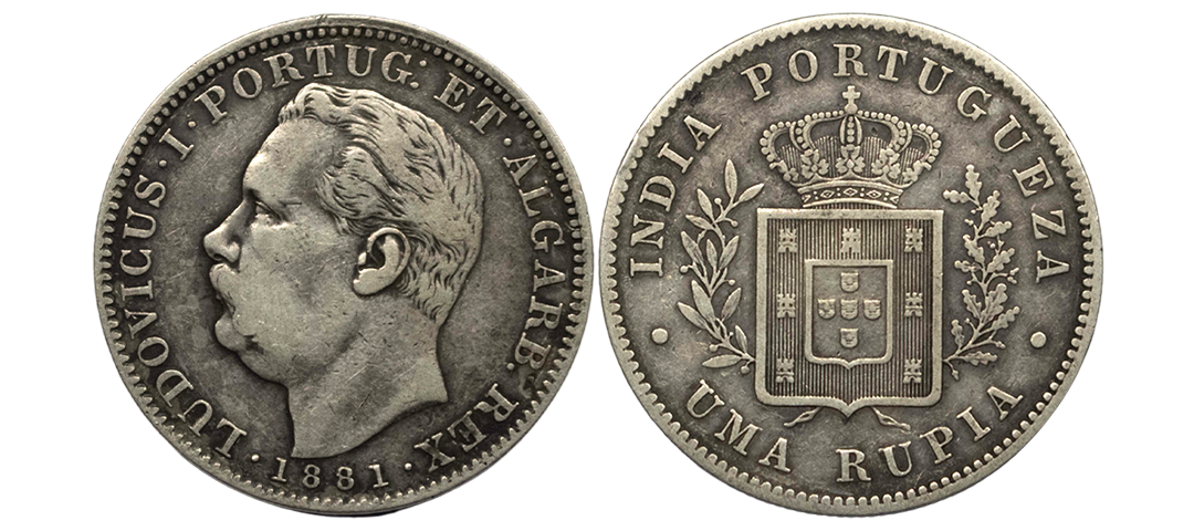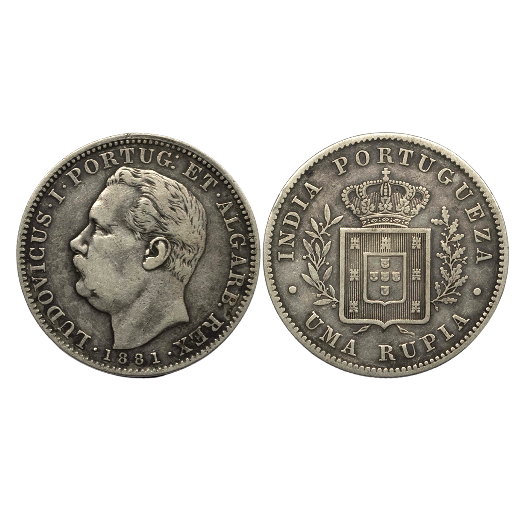 Indo-Portuguese, Luis (1861-1889 AD), Silver 1/8 Rupia, 1.47Grms, Goa issue, AD 1881, OBV: Bust of luiz facing to left with date, REV: Crowned arms with value. (KM # 309). Very Fine.