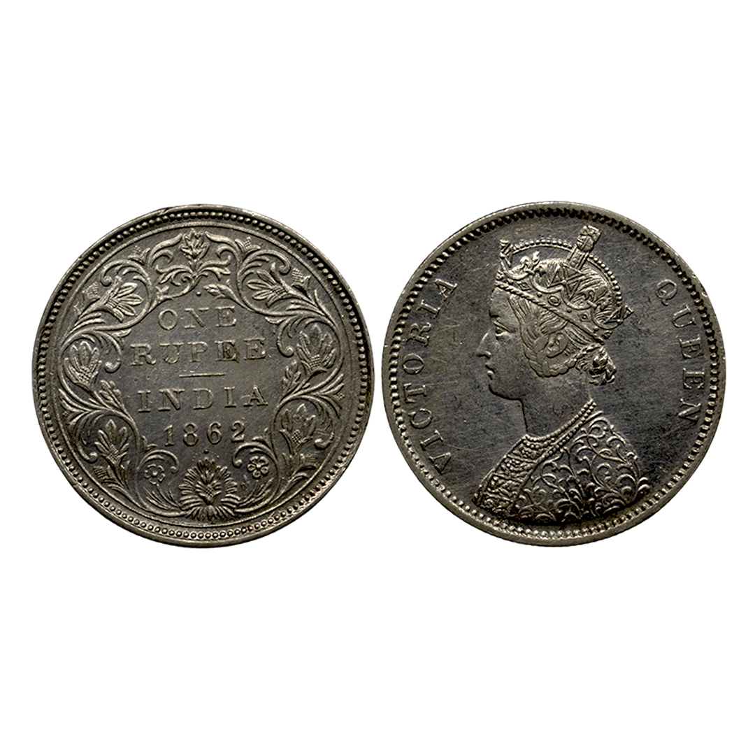 British India, Victoria Empress, 1862, Silver Rupee, Calcutta Mint, 1/7 Dots, Top Dot in Top Flower, very fine, Very Rare.