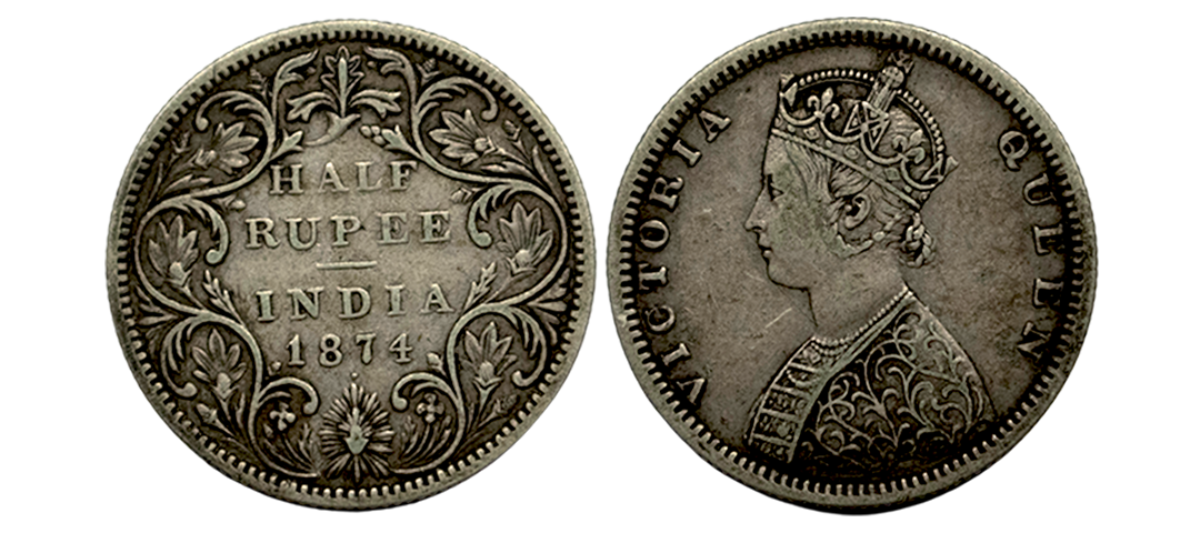 Victoria Queen, Silver 1/2 Rupee, 1840, Continuous Legends, Bombay Mint, Graded XF45 by PCGS, Rare.