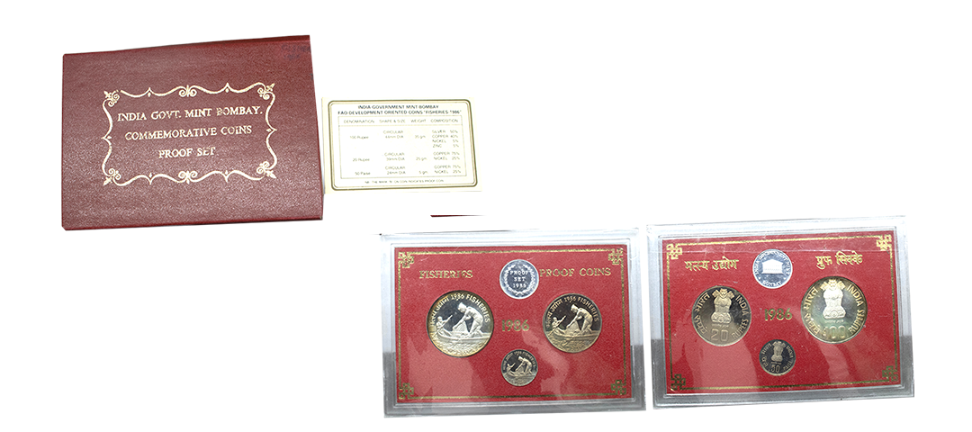 1985, Reserve Bank of India, Golden Jubilee, proof set of 1 Coin, 100 Rupees, Bombay mint, RB 105, in original mint packing with detail card.