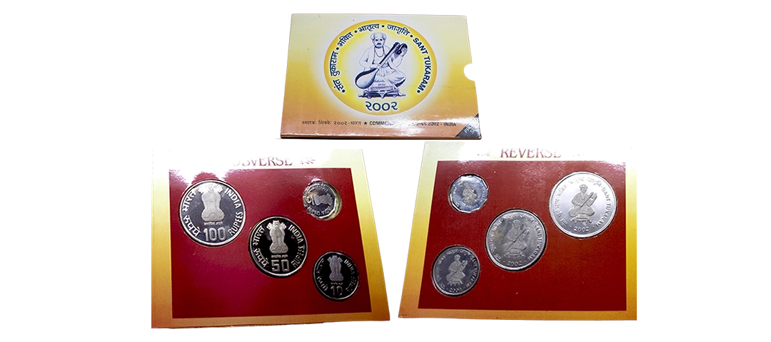 1998, Sri Aurobindo, Proof set of 4 coins, 100 Rupees, 50 Rupees, 10 Rupees and 2 Rupees, Mumbai Mint, RB 206, in original mint packing.