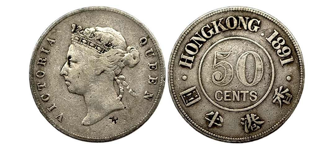 Hong Kong, Silver 50 Cents, 13.41Grms, AD 1891, Portrait of Victoria Queen on obv., Value, date and name of country on rev. (KM # 9). Very Fine.