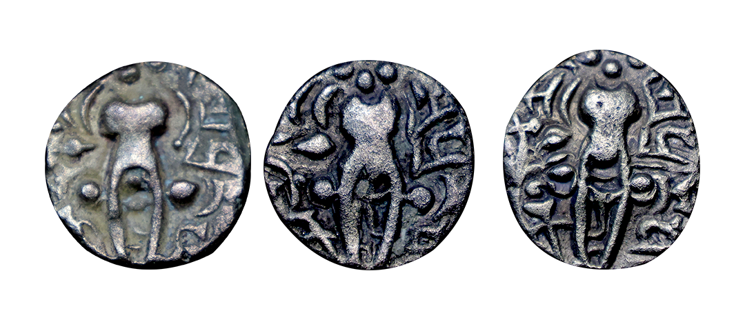 Post-Gupta, Karkotas of Kashmir, Pratapaditya (c. 7th-8th Cent. AD), Based Gold Dinar (3pcs), 7.22g, 6.80g, 6.93g, OBV: Kushan-style king standing facing, sacrificing at altar at left, Late Brahmi legend ‘Kidara’ under arm, REV: Ardoxsho enthroned facing, Brahmi legend ‘Sri Pratapa’ at right field. (Mitch # ACW 3638). Fine.
