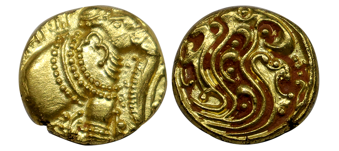 Western Ganga of Talakad (10-11 Century), Gold Gajapati Pagoda, 3.90 gms, Obv. caparisoned elephant standing to the right & partial kannada legends seen above, Rev. an ornamental floral design, Almost uncirculated, very rare.