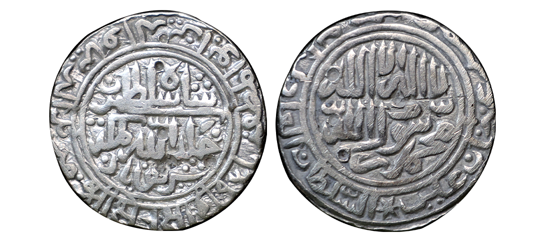 Delhi Sultanate, Tughluq Dynasty, Muhammad bin Tughluq (AH 725-752 /1325-1351 AD), Gold Dinar, 10.91 gms, AH 744, In the name of Abbasid Caliph Al Mustakfi, Obv. fi zaman al-imam al-mustakfi billah amir al-mu'minin Abu Rabia Sulaiman khuld Allahu khilafatahu, Rev. durba hadha al-Dinar al-khalifa fi al-Daulatabad Shahur & date below, G&G # D425, extremely fine, very rare.
