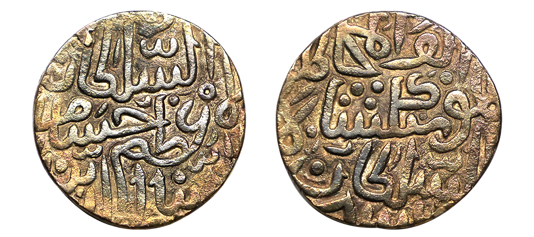 Jaunpur Sultan, Shams ud-din Ibrahim Shah (AH 804-844/1402-1440 AD), Gold Tanka, 11.46 gms, Obv: Arabic legend "al-sultan al-a'zam Shams ud dunya wa'l din Abu'l Muzaffar Ibrahim Shah al-sultani khuldat mamlakatahu", Rev: Arabic legend "fi zaman al-imam amir al-mominin abu'l fath khuldat khilafatahu" within a circle, G&G # J2, very fine+, very rare. Note: G&G has listed this coin as a 'Tanka', the marginal inscription on reverse clearly mentions it to be a 'Dinar'.