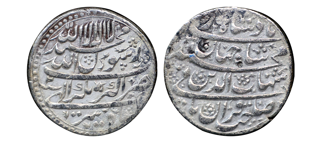 Shah Jahan (AH 1037-1068; 1628-1658 AD), Silver Rupee, 11.37 gms, Akbarabad Mint, AH 1047, RY 10, Obv. Kalima Shahada Hijri year 1047 within a dotted square frame the four Caliphs' names in the margins, Rev. Shahjahan Badshah Ghazi ry 10, saheb-e-qiran sani Shihab-ud-din Muhammad zarb Akbarabad in the margins, Unlisted type, very fine, very rare.