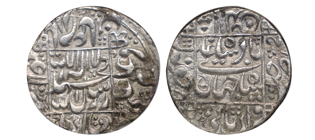 Shah Jahan (AH 1037-1068, 1628-1658 AD), Silver Rupee, 11.40 gms, Junagadh Mint, AH 1057, KM # 235.12, Graded as AU 50 by PCG(india),, very scarce.