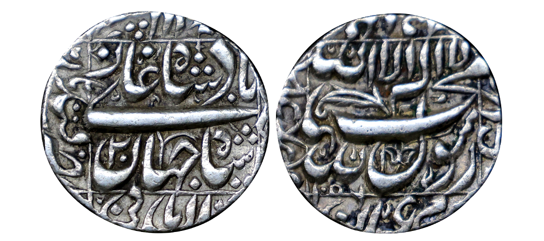 Shah Jahan (AH 1037-1068, 1628-1658 AD), Silver Rupee, 11.33 gms, Patna Mint, Obv. Kalima Shahada within a square four Caliphs' name around in margin, Rev. Shahjahan Badshah Ghazi, saheb-e-qiran sani Shihab-ud-din Muhammad zarb patna in margins, KM # 235.20, struck on big flan, about fine, scarce.