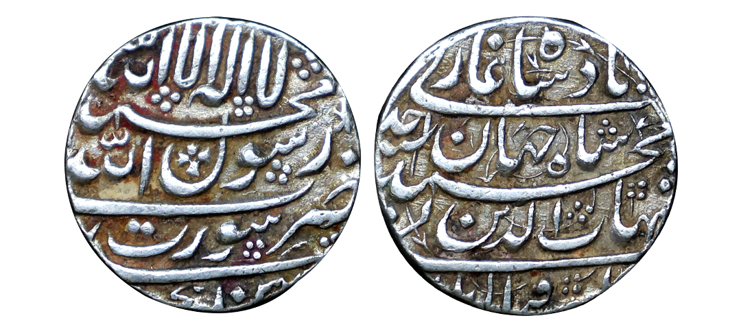 Shah Jahan (AH 1037-1068, 1628-1658 AD), Silver Rupee, 11.33 gms, Patna Mint, Obv. Kalima Shahada within a square four Caliphs' name around in margin, Rev. Shahjahan Badshah Ghazi, saheb-e-qiran sani Shihab-ud-din Muhammad zarb patna in margins, KM # 235.20, struck on big flan, about fine, scarce.